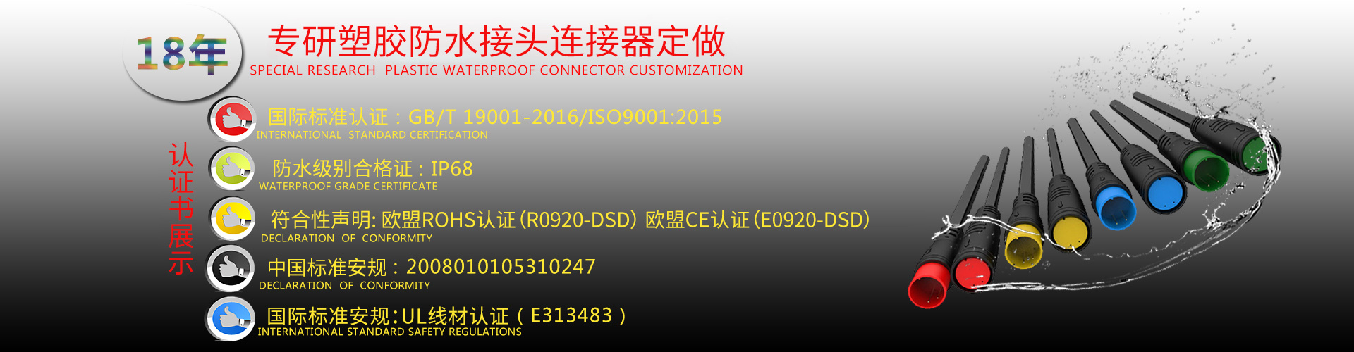 成立于2002年,坐落于設計之都中國廣東省深圳市。公司致力于LED防水連接器、衛浴防水連接器、燈具防水連接器、太陽能防水連接器、地暖防水線、路燈防水線、電動車防水線、防水連接線材、工業防水插頭等各類連接線開發(fā)、設計、生產、銷售的專業廠家,產品廣泛應用于工業、安防、電腦、通訊、家電、機電、汽車、LED等各種電子產品中,主要包括:生產及加工2.54、2.0 、2510、3.96、5.08、SAN/SCN、XH 、PH 等各系列連接線,幾百多種規(guī)格的電子接插線、LED、防水線,并可按客戶要求開發(fā)、設計、制造。